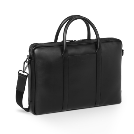 Made for you to head out in style: The Audi business case combines timelessly elegant design with fine materials and provide enough space for all the things you need in your day-to-day business life. Details: - Business case made of Italian cowhide leather - Main compartment with a two-way zip - Padded compartment for laptops up to 15" - Zip pocket and pen loops - Exclusive cascade-print lining - Slip pocket on the front with discreet embossing of the Audi rings - detachable, adjustable shoulder strap with leather shoulder pad - Made by hand in Europe Dimensions: approx. 41 √ó 7 √ó 28 cm (L x W x H) Material: 100% cowhide leather; Lining: 100% recycled polyester Colour: Black; Lining: Black, Grey, Blue